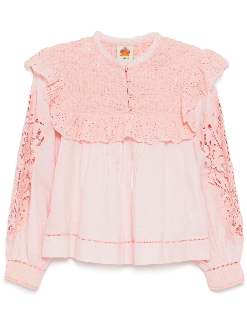 Rose Honeycomb blouse Highlights - Light pink - Front button placket - Ruffled detailing Imported Composition Cotton 100% SIZE & FIT Model measurements Height 5 ft 9 in(1.76 m) Bust/Chest 31.88 in(81 cm) Hips 33.85 in(86 cm) Waist 24.01 in(61 cm) FittingInformation Designed to be unstructured, offering a loose fit throughout Made from a midweight non-stretch fabric Washing instructions Machine Wash