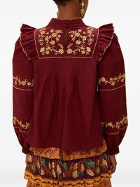 ruffled embroidered top Highlights - Burgundy - Floral embroidery - Ruffled trim - High neck - Long sleeves - Pleated detail Imported Composition Organic Cotton 100% Washing instructions Hand Wash