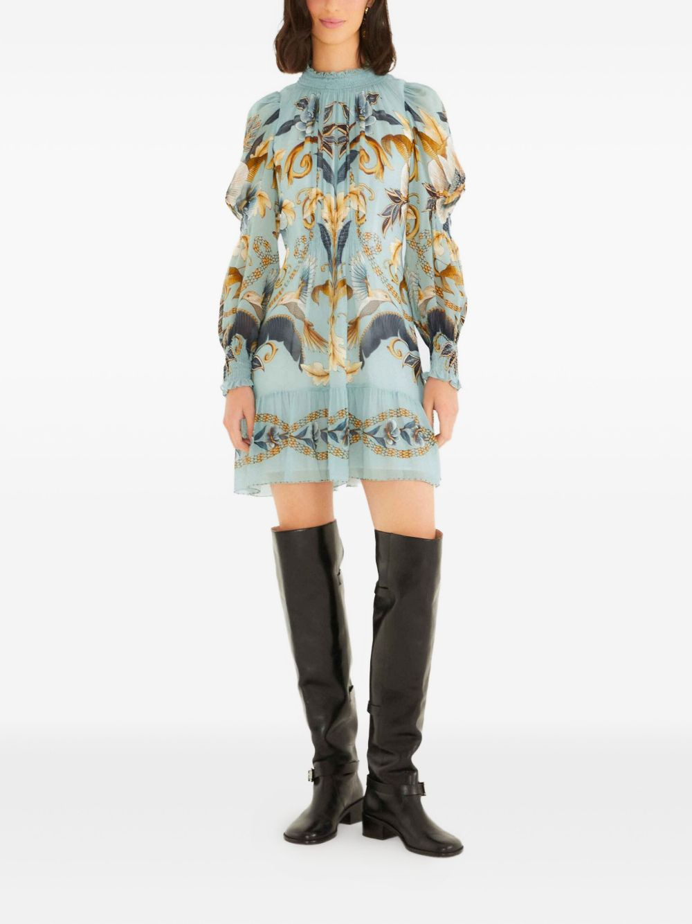 Blue Snake Garden Long Sleeve Mini Dress