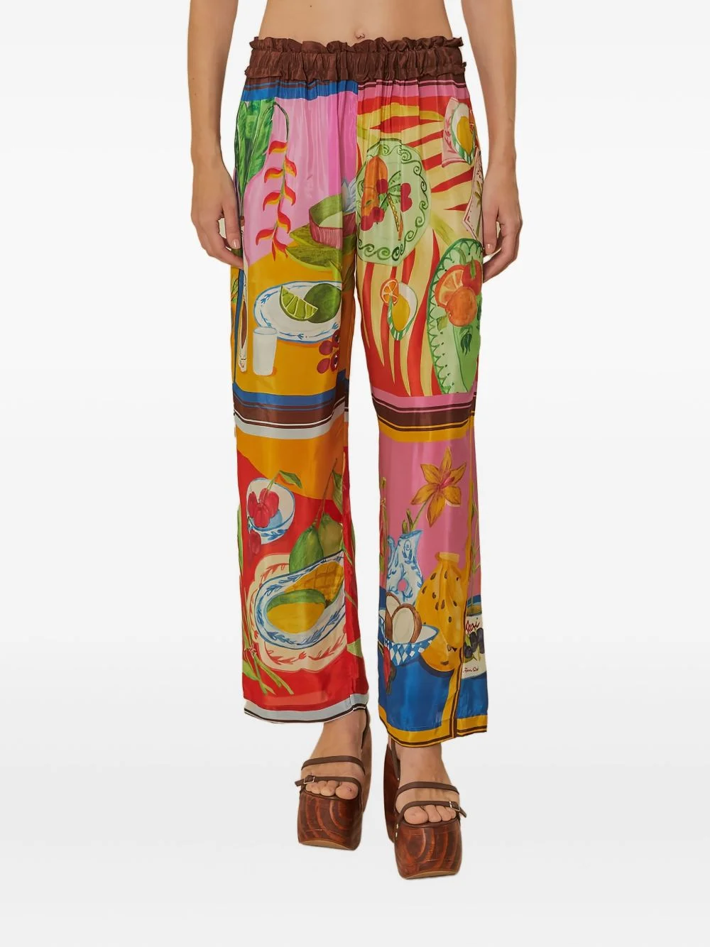 ruffled printed trousers Highlights - Pink, orange and multicolor - Ruffled waistband - All-over print Imported Composition Viscose 100% Washing instructions Read Manufacturer Guidelines