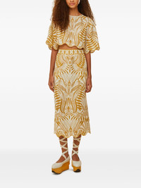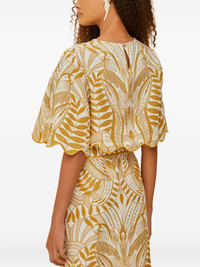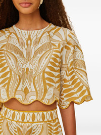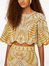 Scalloped-hem bird-print blouse Highlights - Off-white - Bird print - Scalloped hem - Short sleeves - Round neck - Embroidered details Imported Composition Linen/Flax 100%, EcoVero Viscose (LENZING) 100% Washing instructions Read Manufacturer Guidelines