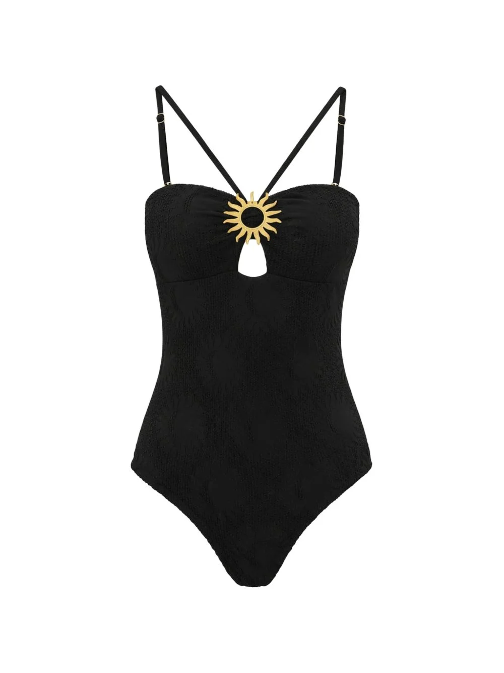 sunny moon swimsuit Highlights - Black - Cut-out detail - Sun applique - Adjustable straps - Scoop back - Be mindful to try on swimwear over your own garments. Imported Composition Viscose 100% Washing instructions Machine Wash