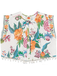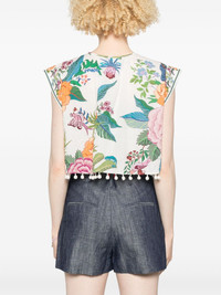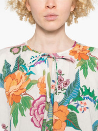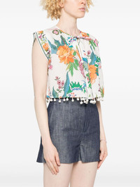 Sweet Bloom blouse Highlights - White - Front tie fastening - Keyhole neck - Sleeveless - Floral print Imported Composition Cotton 100% SIZE & FIT Model measurements Height 5 ft 9 in(1.75 m) Bust/Chest 34.64 in(88 cm) Hips 36.61 in(93 cm) Waist 26.37 in(67 cm) Measurement CHEST 55.11 in(140 cm) LENGTH 18.89 in(48 cm) FittingInformation Designed to be unstructured, offering a loose fit throughout Made from a lightweight non-stretch fabric Washing instructions Machine Wash