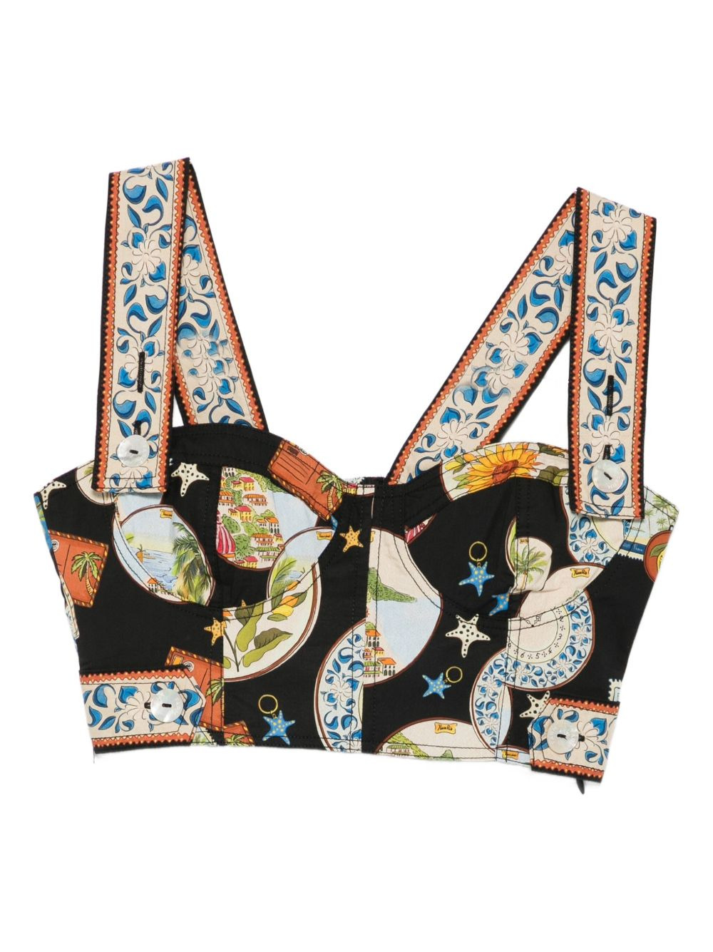 Cropped printed cotton bustier top Black