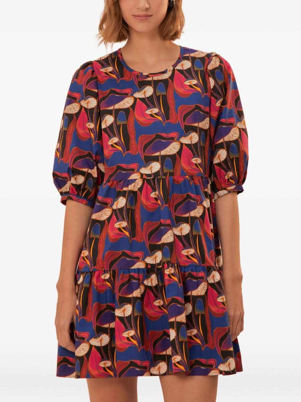 Wild Mushrooms puff-sleeve mini dress Highlights - Red, brown and blue - Mushroom print - Tiered skirt - Puff sleeves - Round neck - Concealed zip fastening Imported Composition Cotton 100% Washing instructions Read Manufacturer Guidelines