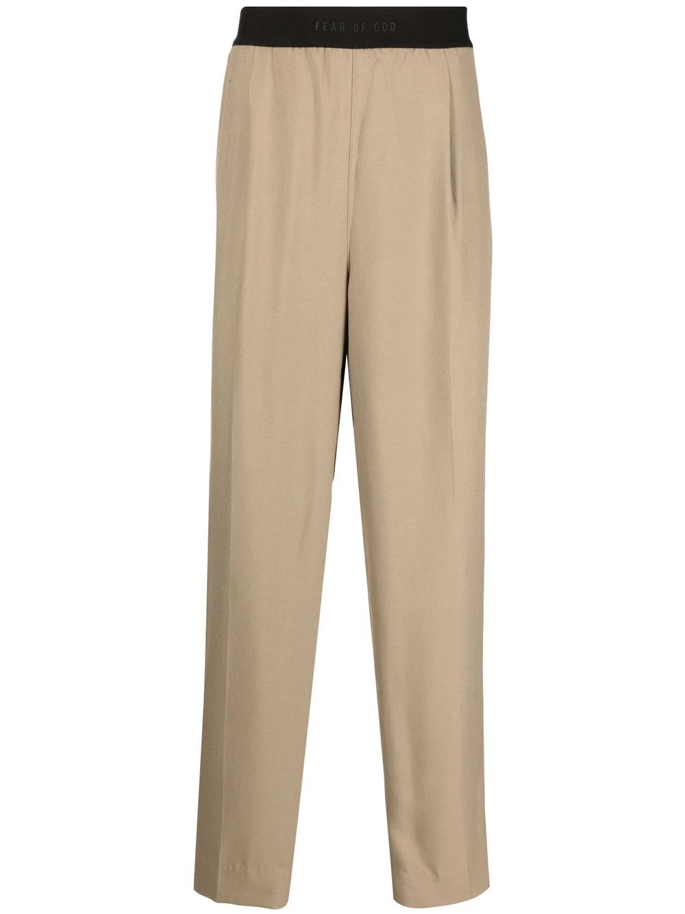 Everyday straight leg trousers beige/black high waist elasticated waistband two side slit pockets two rear welt pockets straight leg Made in United States Composition Outer: Viscose 100% Lining: Polyester 65%, Polyurethane 35% SIZE & FIT Model measurements Height 6 ft 2 in(1.89 m) Bust/Chest 37.79 in(96 cm) Hips 37 in(94 cm) Waist 29.92 in(76 cm) Measurement FRONT RISE 12.2 in(31 cm) INSIDE LEG 30.31 in(77 cm) WAIST 29.13 in(74 cm) FittingInformation This piece fits true to size. We recommend you get your regular size Designed for a slim fit at the waist and loose over the leg Made with a mid-weight non-stretch fabric Washing instructions Dry Clean Only