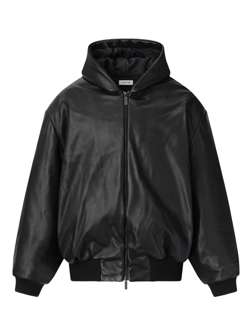 hooded leather jacket Highlights - Black - Hood - Zip fastening - Ribbed hem - Ribbed cuffs Made in Italy Composition Nappa Leather 100% Washing instructions Read Manufacturer Guidelines