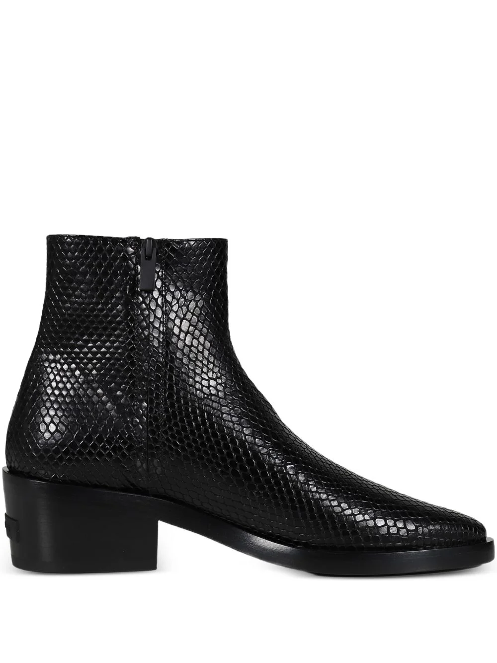 Santa Fe lizard-effect boots Highlights - Deep black - Lizard effect - Pointed toe - Zip fastening - Block heel Made in Italy Composition Outer: Calf Leather 100% Lining: Calf Leather 100% Sole: Calf Leather 100%