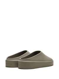 The California slippers Fear of God is releasing another iteration of the airy California slip-on, this time, in a grey hue. Its silhouette is inspired by the West Coast and is hand-sculpted. It features a backless design with a slit on its lateral medial side for ventilation and is completed with an engraved logo on the heel, giving a little contrast to its minimal look. Highlights - Taupe grey - Cut-out detailing - Branded heel counter - Almond toe - Slip-on style - Branded insole - Rubber outsole Imported Composition Lining: Rubber 100% Sole: Rubber 100% SIZE & FIT FittingInformation This piece fits large – take one size down