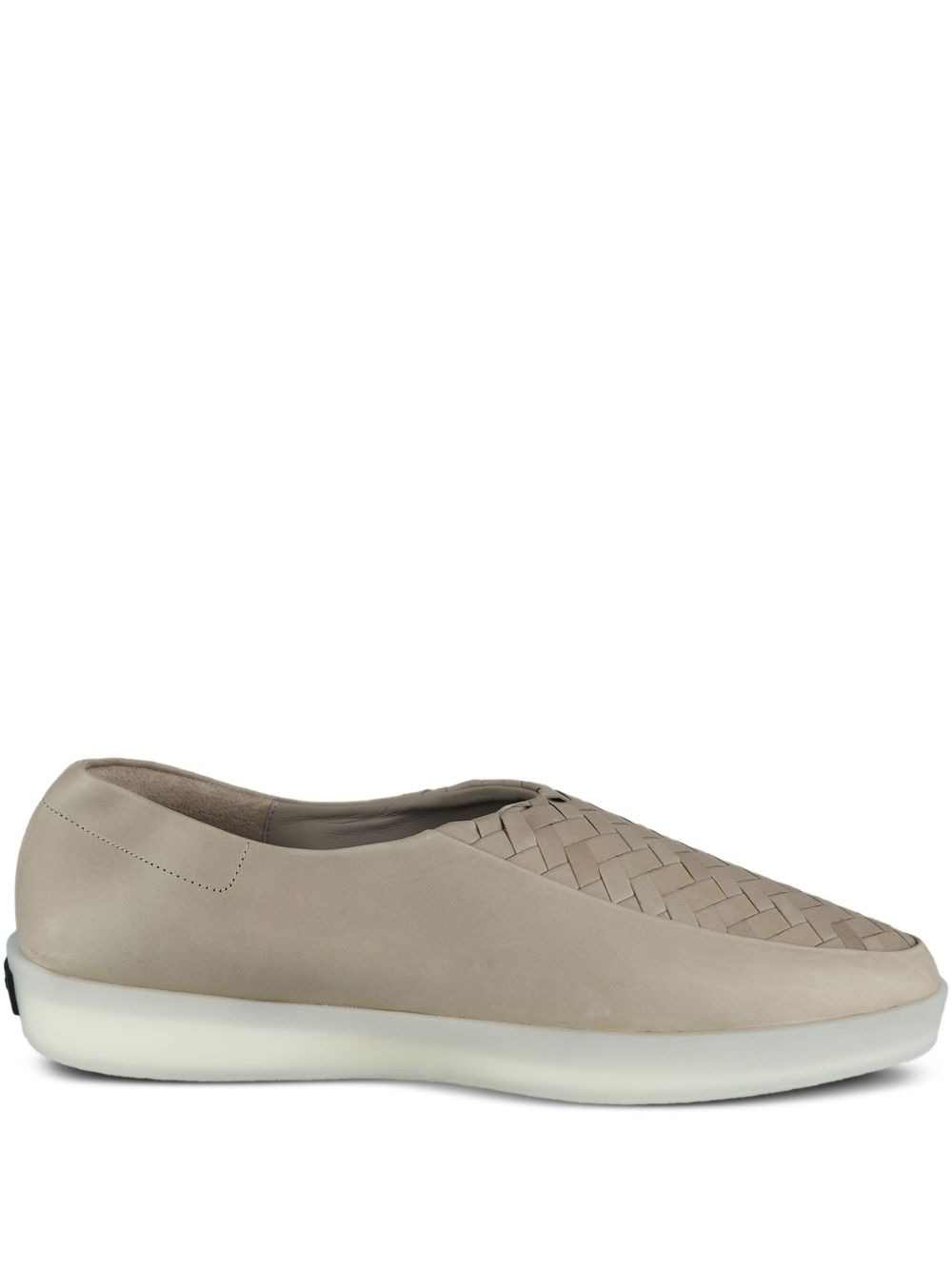 woven-panel leather loafers Highlights - Brown - Leather upper - Woven panel - Slip-on style - Round toe Made in Italy Composition Sole: Rubber 100% Outer: Bovine Leather 100% Lining: Leather 100%