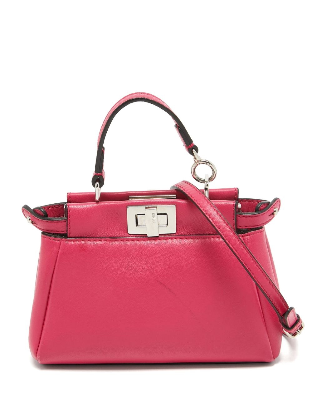 2015 micro Peekaboo two-way bag Highlights - Circa 2015 - Fuchsia pink - Leather - Single top handle - Adjustable detachable shoulder strap - Twist-lock fastening - Main compartment - Silver-tone hardware - This piece comes complete with a protective dust bag. - Condition: good. this previously owned and used item is in good condition with minimal signs of use. this may include fading of material or plating and scratches. Made in Italy Composition Outer: Leather 100% Lining: Leather 100%, Fabric 100% SIZE & FIT Measurement DEPTH 4.33 in(11 cm) HANDLE 1.96 in(5 cm) HEIGHT 4.33 in(11 cm) STRAP 24.01 in(61 cm) WIDTH 5.9 in(15 cm)