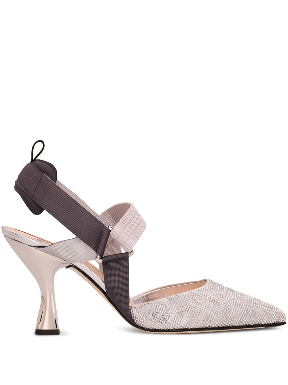 85mm Colibri strass heeled sandals Highlights - Grey - Strass embellishment - Elasticated strap - Pointed toe Imported Composition Outer: Polyester 100% Lining: Goat Skin 100% Sole: Leather 100% SIZE & FIT Measurement HEEL 3.34 in(8.5 cm)