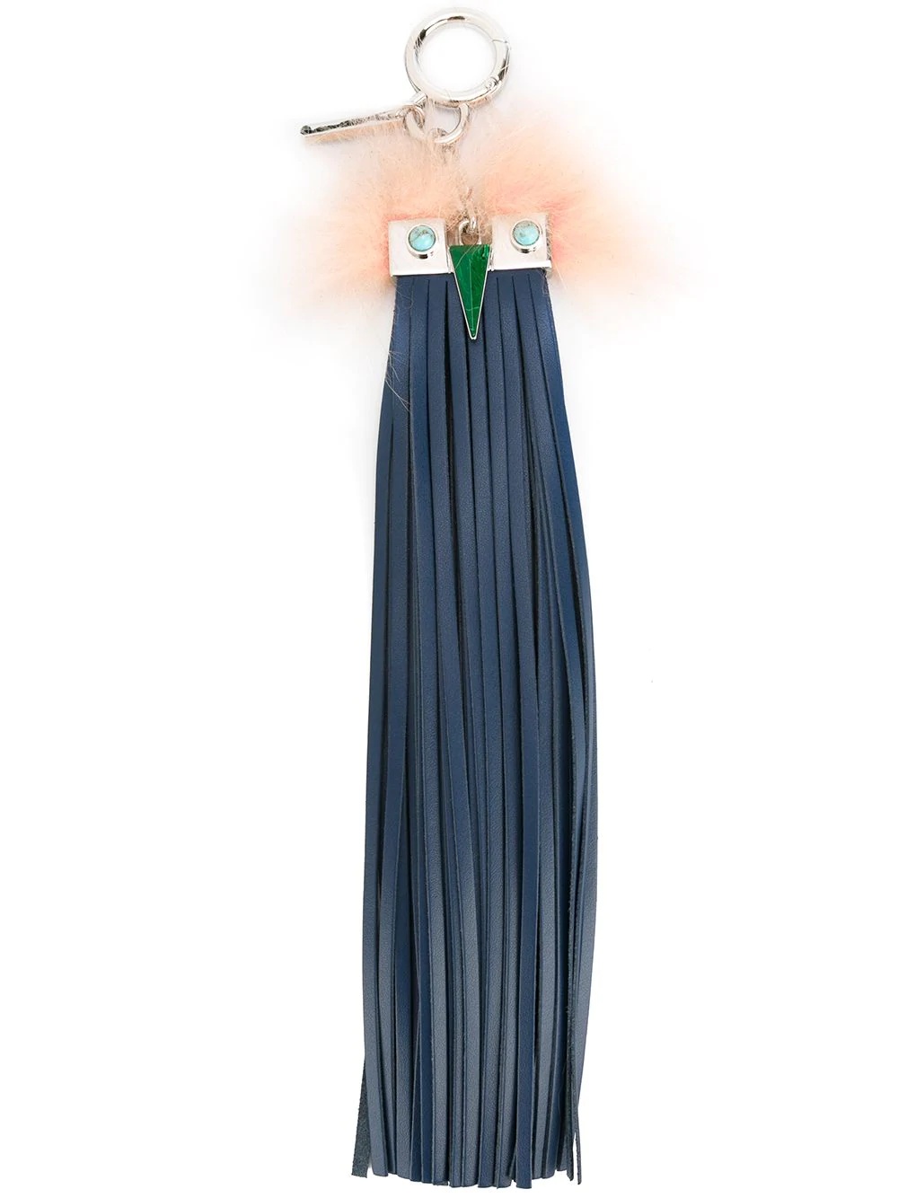 Bag Bug charm The wonderfully creative Karl Lagerfield continues to create adorable fun fur pieces for Fendi. Who needs a pet when you have this fluffy little monster on your arm? This navy blue leather and fur Bag Bug charm from Fendi features a fringed design. Please note that this item cannot be shipped outside the E.U.. Made in Italy Composition Calf Leather 90%, Metal 10%