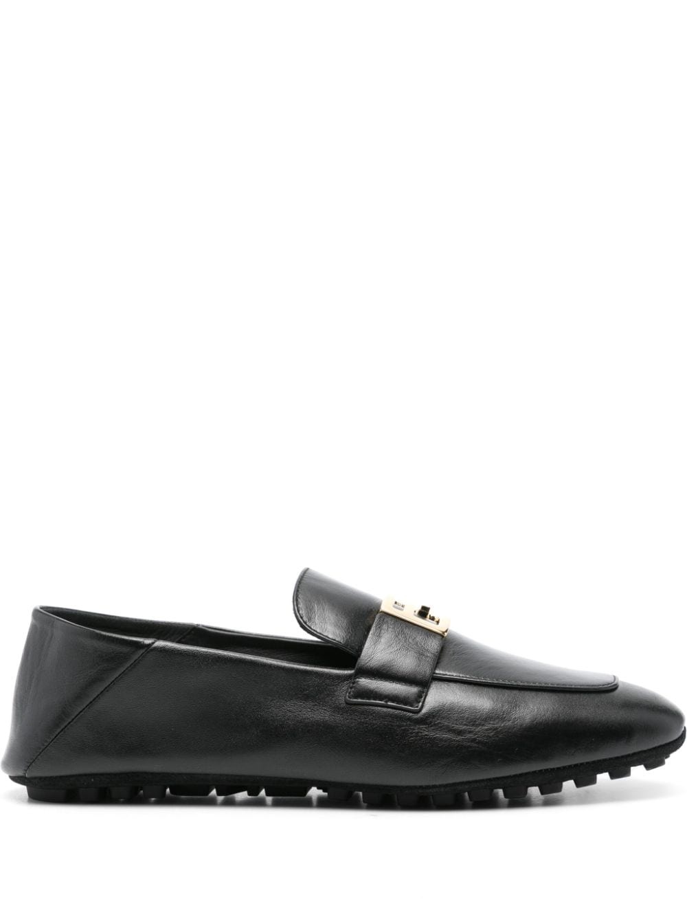 Baguette leather loafers Highlights - Black - Calf leather - Smooth grain - Ff-motif gold-tone plaque - Logo at the sole - Almond toe - Branded leather insole - Suede outsole - Rubber lug sole - Slip-on style - This piece comes complete with a protective dust bag. Made in Italy Composition Lining: Calf Leather 100% Sole: Rubber 100%, Calf Suede 100% Outer: Nappa Leather 100% SIZE & FIT Measurement HEEL 0.19 in(0.5 cm)