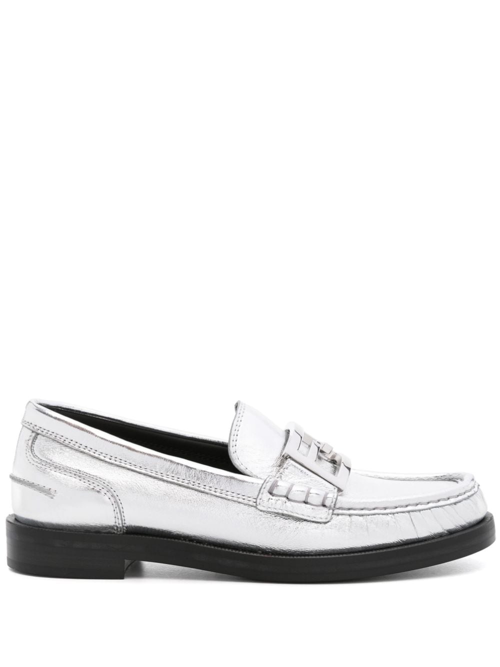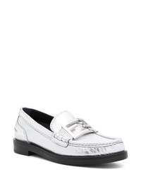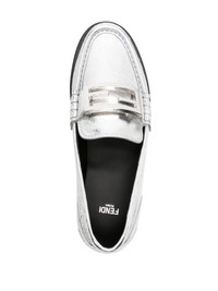 Baguette metallic leather loafers Highlights - Silver-tone - Calf leather - Metallic effect - Ff silver-tone logo plaque - Slip-on style - Almond toe - Leather lining - Branded insole - Low stacked heel Made in Italy Composition Lining: Calf Leather 100% Outer: Calf Leather 100% Sole: Calf Leather 100%, Rubber 100%