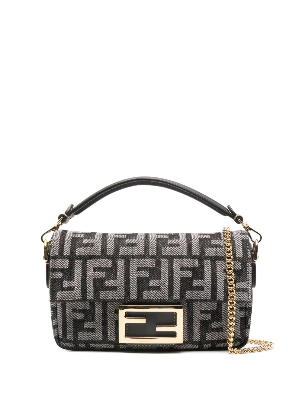 Baguette mini bag Highlights - Black - Ff motif - Gold-tone hardware - Foldover top - Chain-link detailing - Main compartment Made in Italy Composition Outer: Denim 100% SIZE & FIT Model measurements Height 5 ft 11 in(1.8 m) Bust/Chest 32.28 in(82 cm) Hips 36.22 in(92 cm) Waist 25.19 in(64 cm) Measurement DEPTH 1.96 in(5 cm) HEIGHT 5.11 in(13 cm) WIDTH 7.87 in(20 cm)