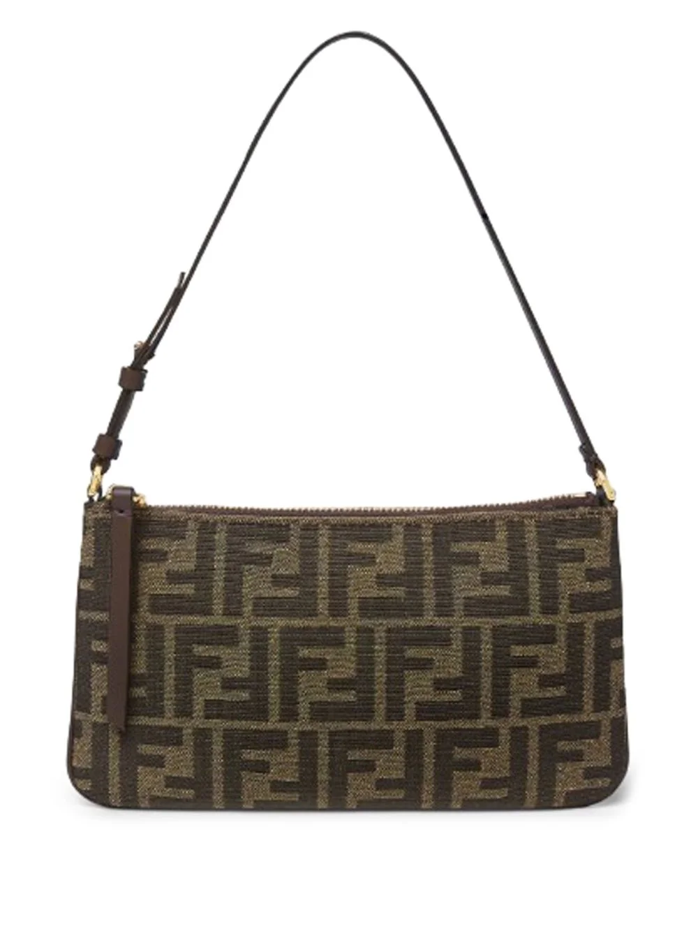 Baguette patterned tote bag Highlights - Brown - Ff jacquard - Zip closure - Leather zip pull - Adjustable shoulder strap - Gold-tone hardware Made in Italy Composition Outer: Calf Leather 100%, Canvas 100% SIZE & FIT Measurement HEIGHT 4.72 in(12 cm) DEPTH 0.39 in(1 cm)