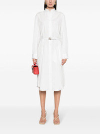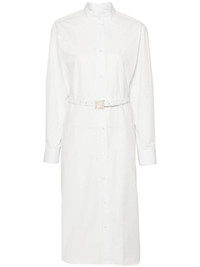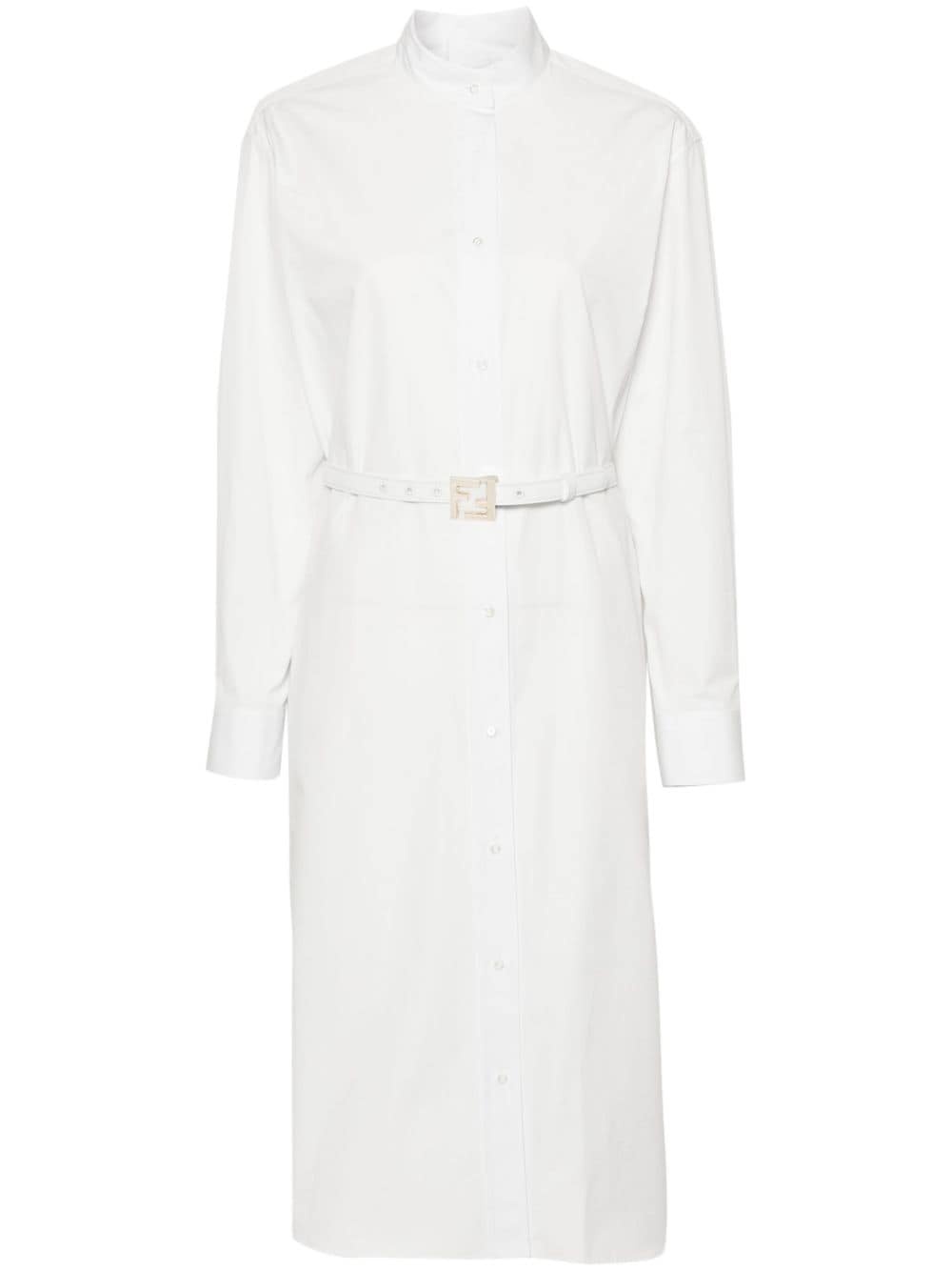 belted shirt dress Highlights - White - Cotton - Poplin texture - Band collar - Long sleeves with buttoned cuffs - Embroidered ff logo to the cuff - Detachable and adjustable waist belt - Ff logo-buckle fastening belt - Two side inset pockets - Below-knee length - Straight hem - Front and rear button fastening Made in Italy Composition Cotton 100% SIZE & FIT Model measurements Height 5 ft 10 in(1.78 m) Bust/Chest 33.46 in(85 cm) Hips 36.22 in(92 cm) Waist 23.22 in(59 cm) FittingInformation Designed to be unstructured, offering a loose fit throughout The belt offers adjustability for fitted preferences Made from a midweight non-stretch fabric This piece fits true to size – take your usual size