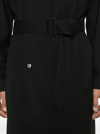 belted trench coat Highlights - Black - Double-breasted button fastening - Belted cuffs - Internal pocket - Two side welt pockets Made in Italy Composition Lining: Cupro 100% Outer: Virgin Wool 100% SIZE & FIT Model measurements Height 6 ft 2 in(1.87 m) Bust/Chest 38.18 in(97 cm) Hips 36.61 in(93 cm) Waist 29.13 in(74 cm) FittingInformation Designed to be unstructured, offering a loose fit throughout The belt offers adjustability for fitted preferences Made from a midweight non-stretch fabric