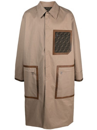 button-up mid-length trench coat Highlights - Sand beige - Signature ff-pattern print - Leather trim - Classic collar - Front press-stud fastening - Long sleeves - Front zip fastening pockets - Central rear vent - Mid-length - Straight hem Made in Italy Composition Outer: Calf Leather 100%, Coconut 100% Lining: Polyester 65%, Cotton 35%