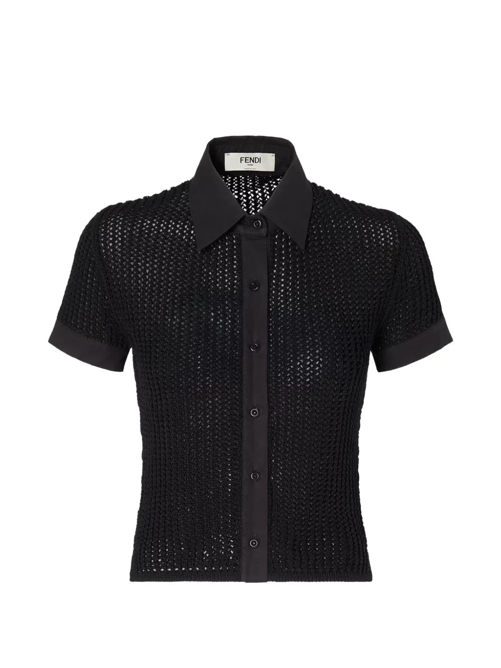 buttoned knitted shirt Highlights - Black - Knitted - Button fastening - Short sleeves - Collar Made in Italy Composition Cotton 100%, Mother of Pearl 100% Washing instructions Read Manufacturer Guidelines
