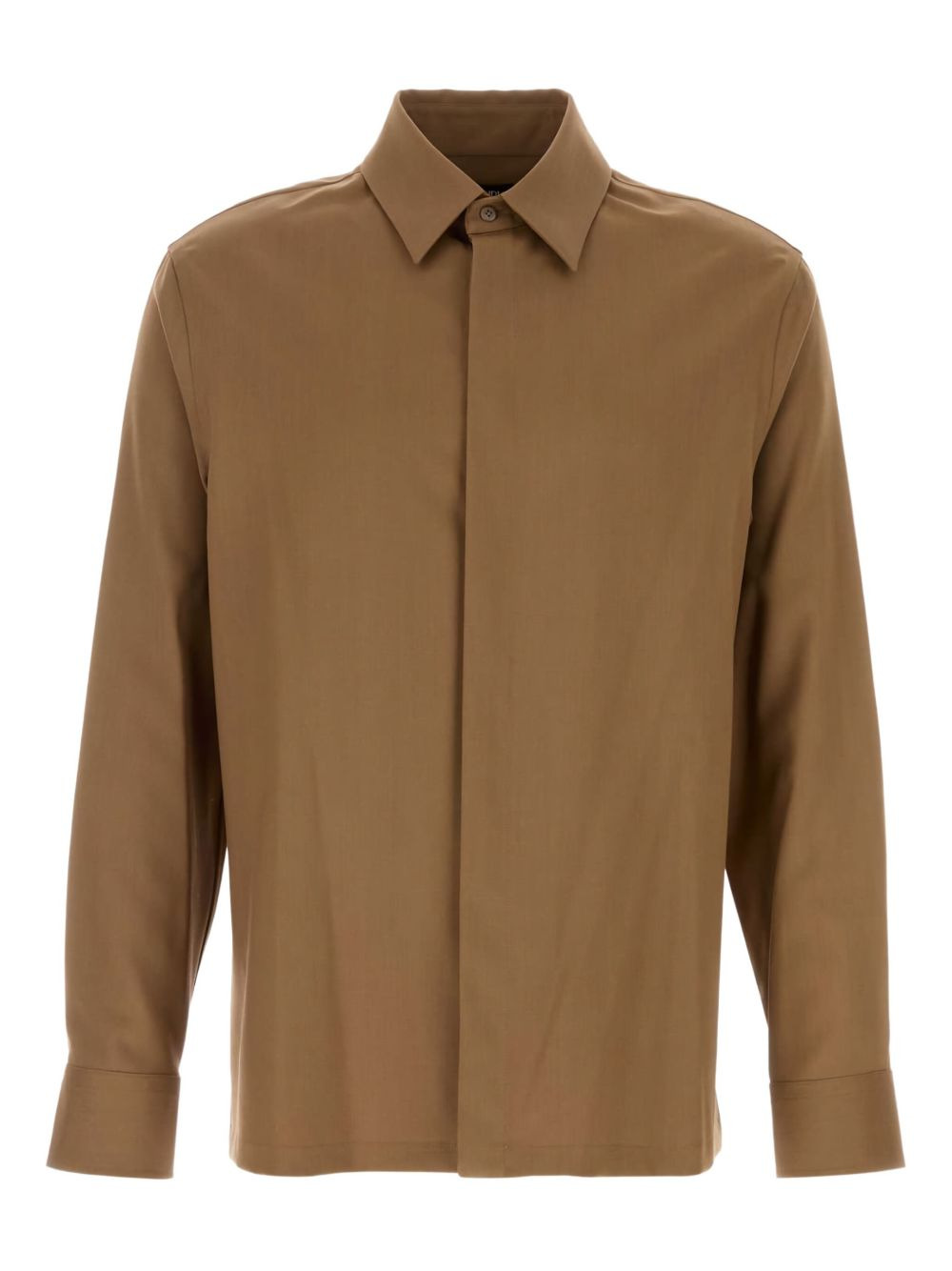 buttoned long-sleeve shirt Highlights - Tobacco brown - Button fastening - Long sleeves - Buttoned cuffs Made in Italy Composition Wool 100% Washing instructions Read Manufacturer Guidelines