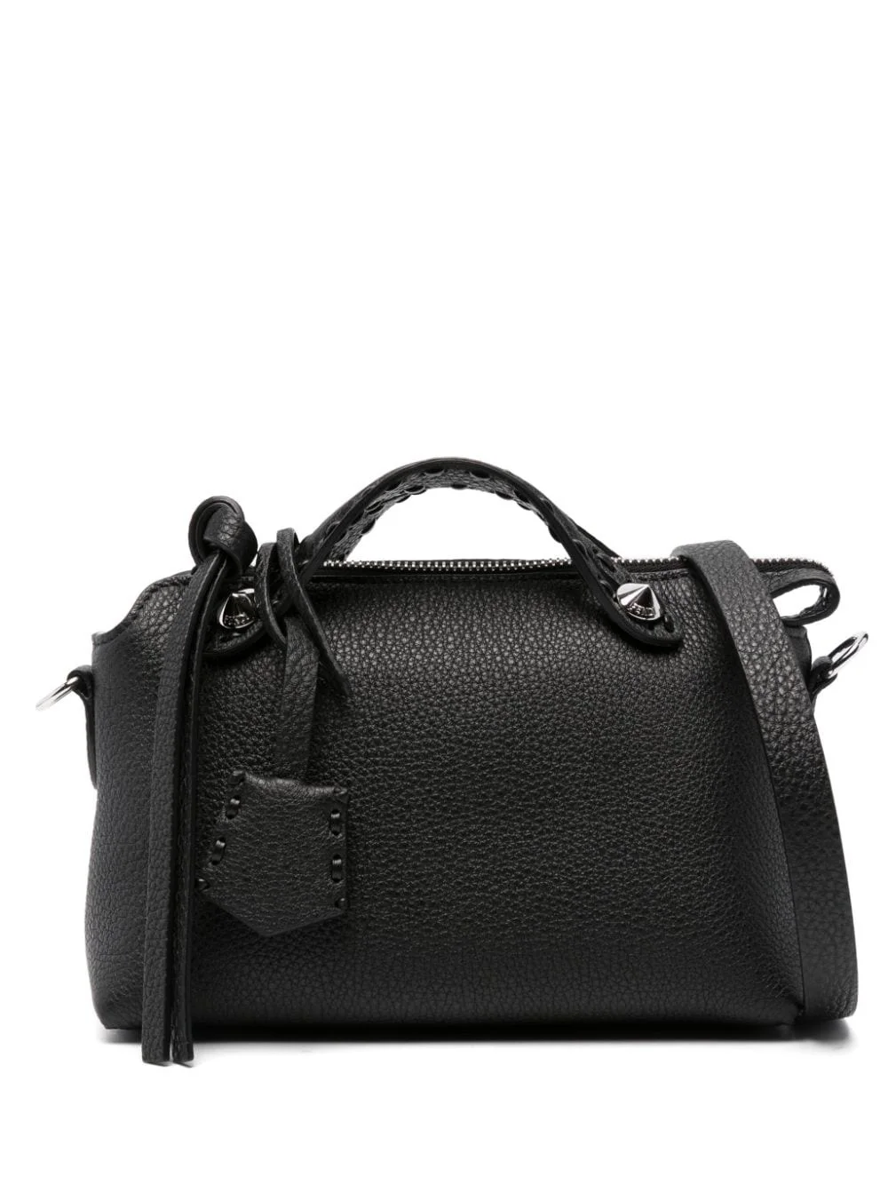 By The Way Selleria mini bag Highlights - Black - Calf leather - Pebbled texture - Top zip fastening - Flat side handles - Adjustable shoulder strap - Spike stud detailing - Keyring attachment - Main compartment - Debossed internal logo Made in Italy Composition Outer: Calf Leather 100% SIZE & FIT Model measurements Height 5 ft 8 in(1.72 m) Bust/Chest 31.88 in(81 cm) Hips 34.64 in(88 cm) Waist 23.62 in(60 cm) Measurement DEPTH 3.54 in(9 cm) HEIGHT 4.72 in(12 cm) STRAP 48.42 in(123 cm) WIDTH 7.87 in(20 cm)