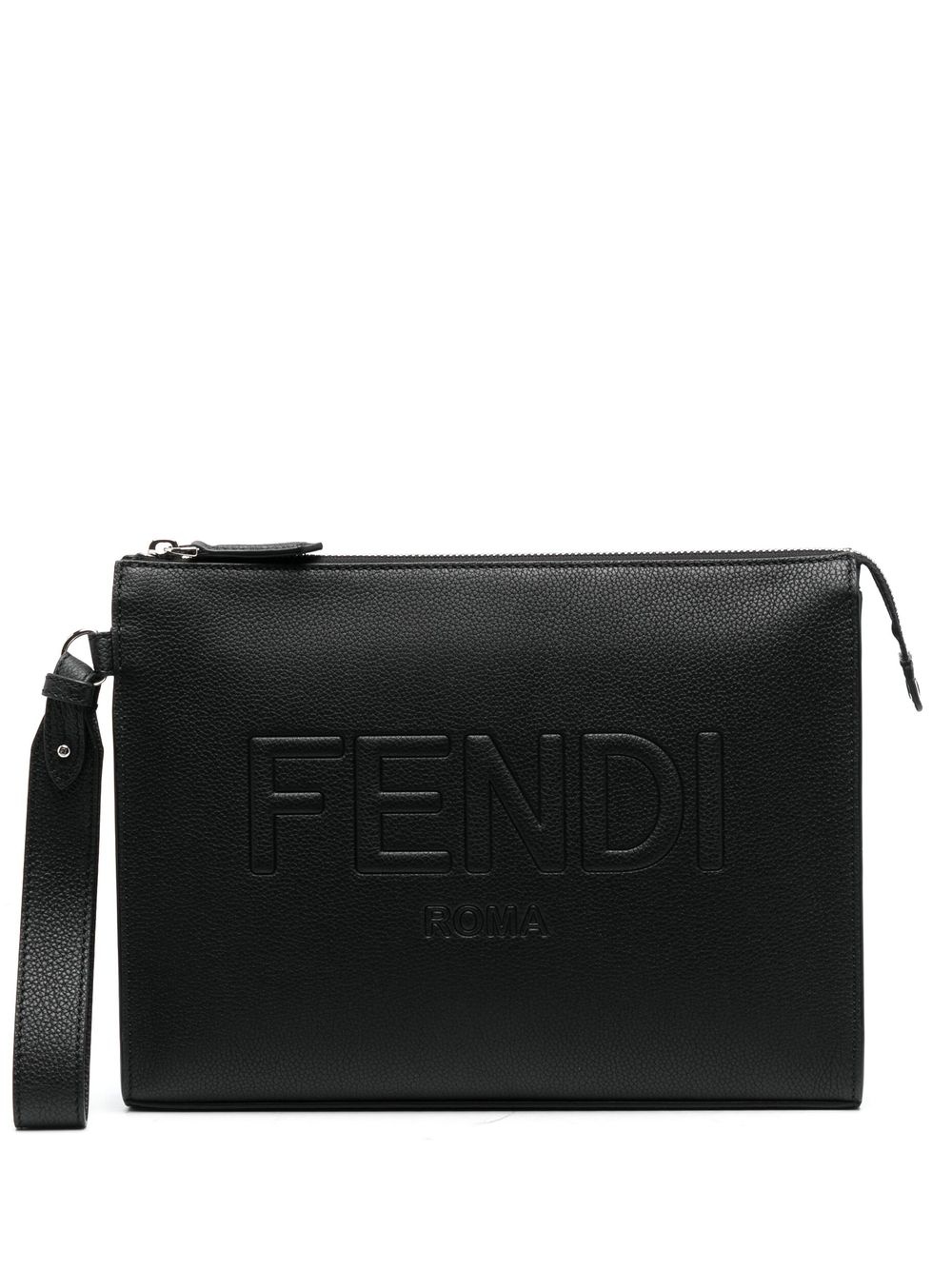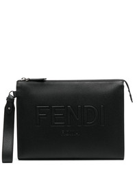 calf-leather clutch bag black calf leather grained texture embossed logo to the front top zip fastening wrist strap main compartment Made in Italy Composition Outer: Calf Leather 100% SIZE & FIT Model measurements Height 6 ft 2 in(1.87 m) Bust/Chest 35.82 in(91 cm) Hips 35.43 in(90 cm) Waist 27.95 in(71 cm) Measurement DEPTH 1.57 in(4 cm) HANDLE 6.69 in(17 cm) HEIGHT 7.87 in(20 cm) WIDTH 10.62 in(27 cm)