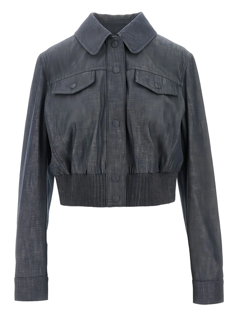 chambray cropped jacket Highlights - Blue - Button fastening - Two chest pockets - Elasticated hem - Buttoned cuffs Made in Italy Composition Cotton 100% Washing instructions Read Manufacturer Guidelines