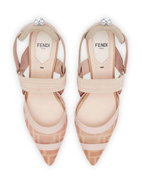 Colibri FF motif slingback pumps Believe it or not, you are in control of your own life. With that being said, it is clear that one of the things that would make you happy would be these nude pink Colibri slingback pumps. Because Fendi knows that this pair is all you need beside you. Nothing haunts us more like the things we didn't pursue! Featuring a pointed toe, a branded insole, a low heel, a tech mesh construction, elastic ribbons and FF motifs. Made in Italy Composition Outer: Cotton 100%, Polyamide 100%, Polyurethane 100% Lining: Goat Skin 100% Sole: Calf Leather 100%, Rubber 100% Viscose 69%, Polyester 31%