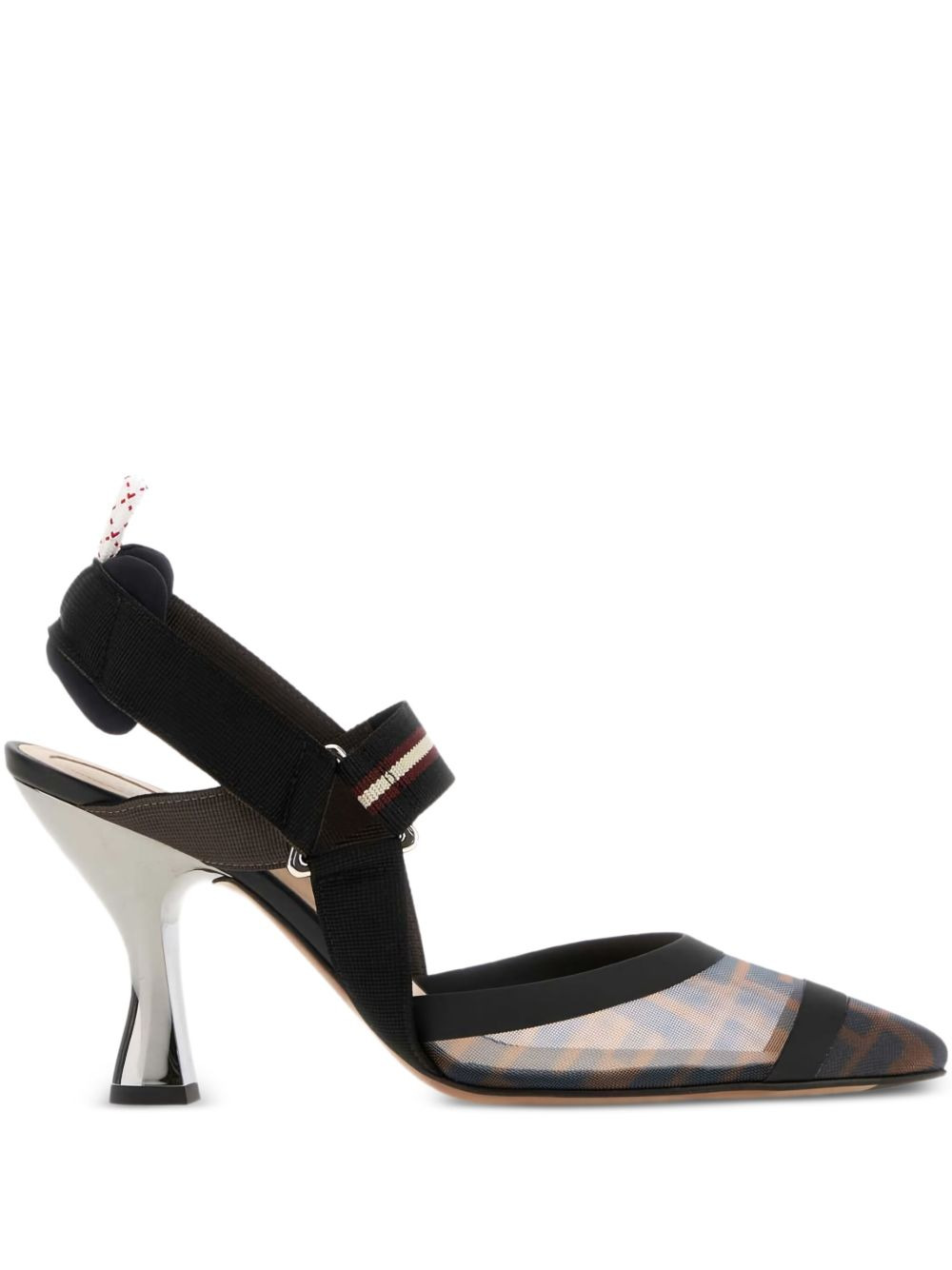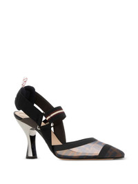 85mm Colibri FF-motif slingback pumps Highlights - Brown - Signature ff-monogram - Rear pull-tab - Pointed toe - Padded ankle Made in Italy Composition Sole: Calf Leather 100%, Rubber 100% Outer: Fabric 100% Lining: Calf Leather 100%, Fabric 100% SIZE & FIT Measurement HEEL 3.34 in(8.5 cm)
