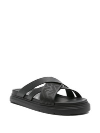 cross-strap leather slides Highlights - Black - Calf leather - Criss-cross straps - Perforated pattern - Flat sole - Open toe Made in Italy Composition Lining: Calf Leather 100% Outer: Calf Leather 100% Sole: Rubber 100%