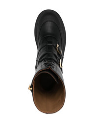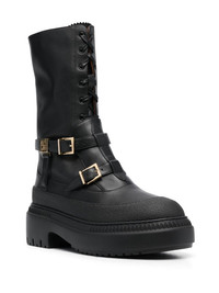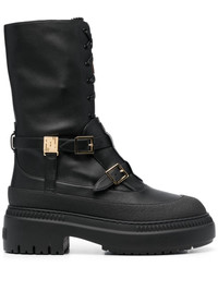 Delfina leather biker boots Highlights - Black - Calf leather - Gold-tone logo plaque - Round toe - Front lace-up fastening - Gold-tone hardware - Side zip fastening - Two buckle-strap fastenings - Chunky rubber lug sole - Mid-calf length Made in Italy Composition Leather 100% SIZE & FIT Measurement HEEL 1.96 in(5 cm) HEIGHT 9.44 in(24 cm) PLATFORM 1.57 in(4 cm)