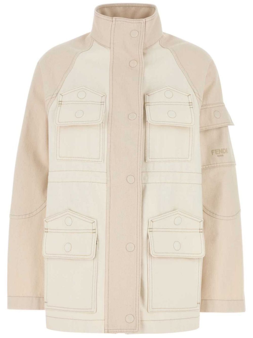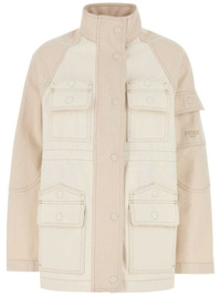 denim bomber jacket Highlights - Beige - Front press-stud fastening - Four front flap pockets - Sleeve flap pocket - Embroidered logo at the sleeve Made in Italy Composition Cotton 100%
