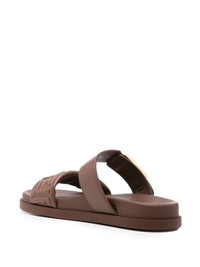 double-band flat sandals Highlights - Brown - Calf leather - Decorative buckle Made in Italy Composition Lining: Calf Leather 100% Sole: Rubber 100% Outer: Calf Leather 100%