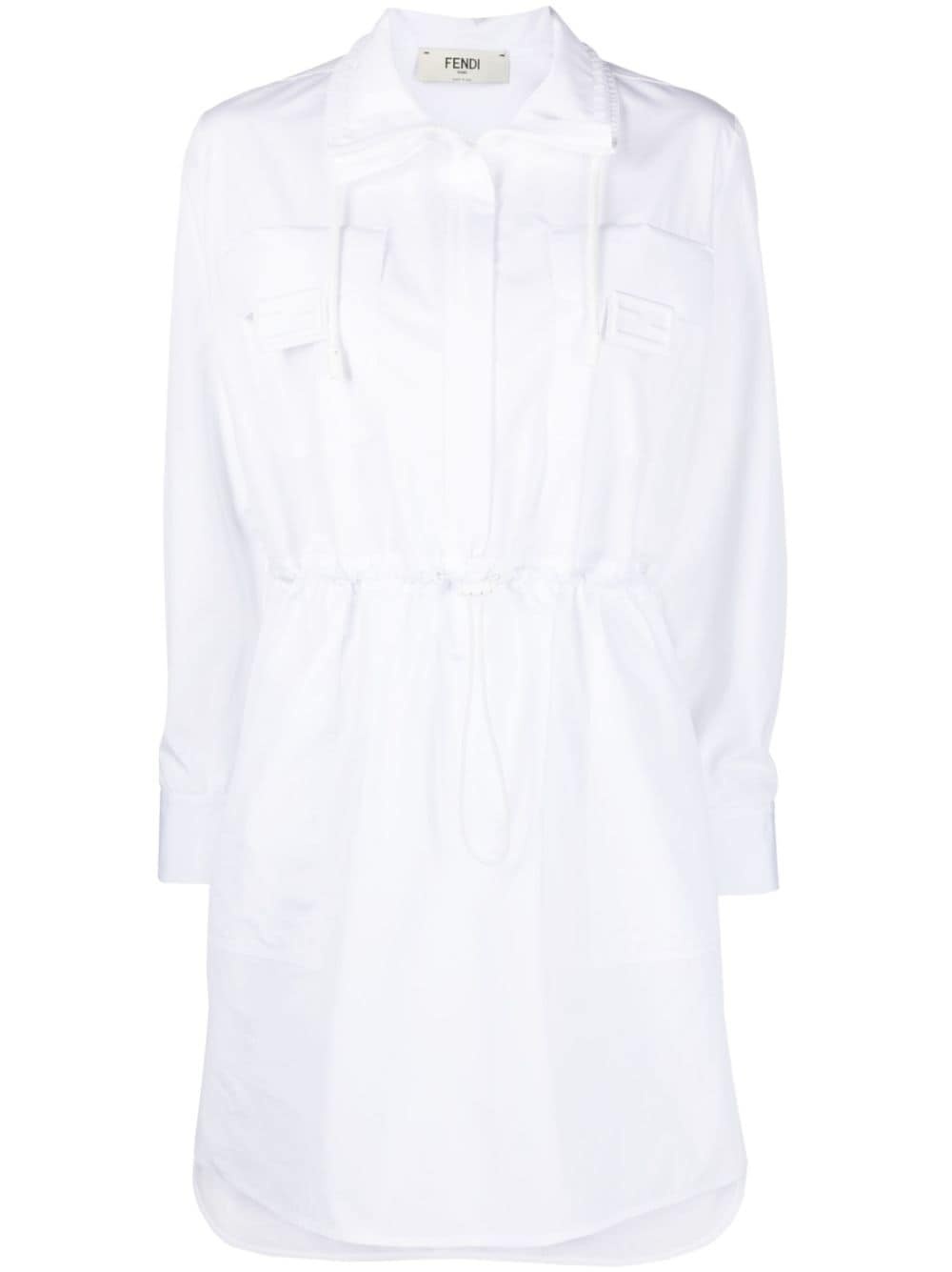 drawstring-waist cotton dress Highlights - Optical white - Cotton - Stand-up collar - Short front zip fastening - Long sleeves - Tied cuffs - Drawstring waist - Two chest flap pockets - Curved hem - High-low hem - Above-knee length Made in Italy Composition Cotton 100% SIZE & FIT Model measurements Height 5 ft 10 in(1.77 m) Bust/Chest 29.92 in(76 cm) Hips 34.25 in(87 cm) Waist 23.62 in(60 cm) FittingInformation Designed to be unstructured, offering a loose fit throughout The adjustable drawstring means that you can adjust this piece’s fit to suit your comfort and preference Made from a midweight non-stretch fabric This piece fits true to size – take your usual size