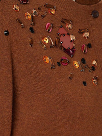 embellished cardigan Highlights - Rust brown - Ribbed crew neck - Button closure - Long sleeves Made in Italy Composition Wool 66%, Cashmere 29%, Spandex/Elastane 5% Washing instructions Read Manufacturer Guidelines