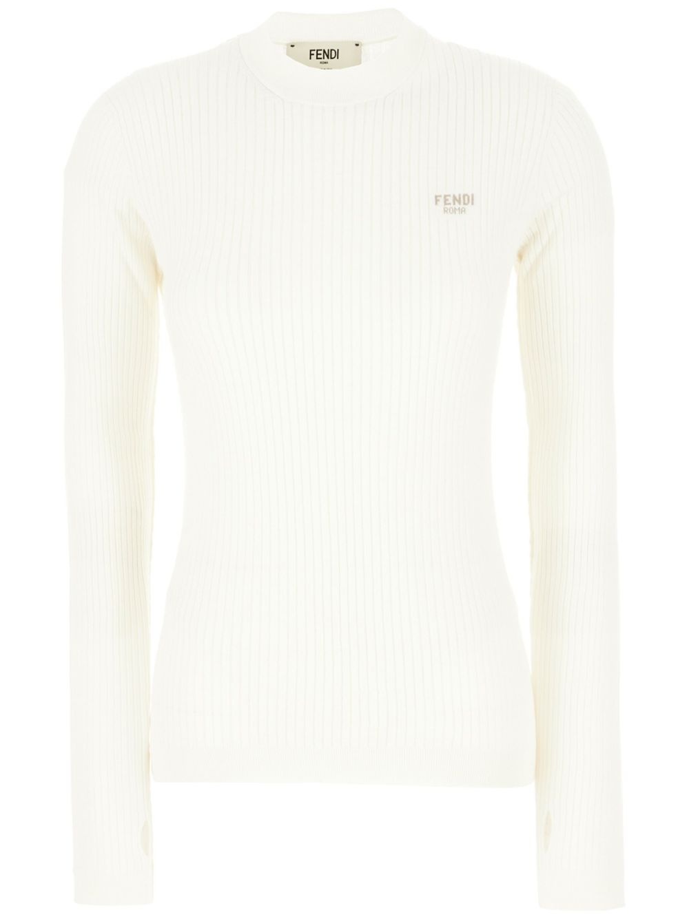embroidered-logo sweater Highlights - White - Ribbed detailing - Round neck - Long sleeves Made in Italy Composition Wool 70%, Silk 30%