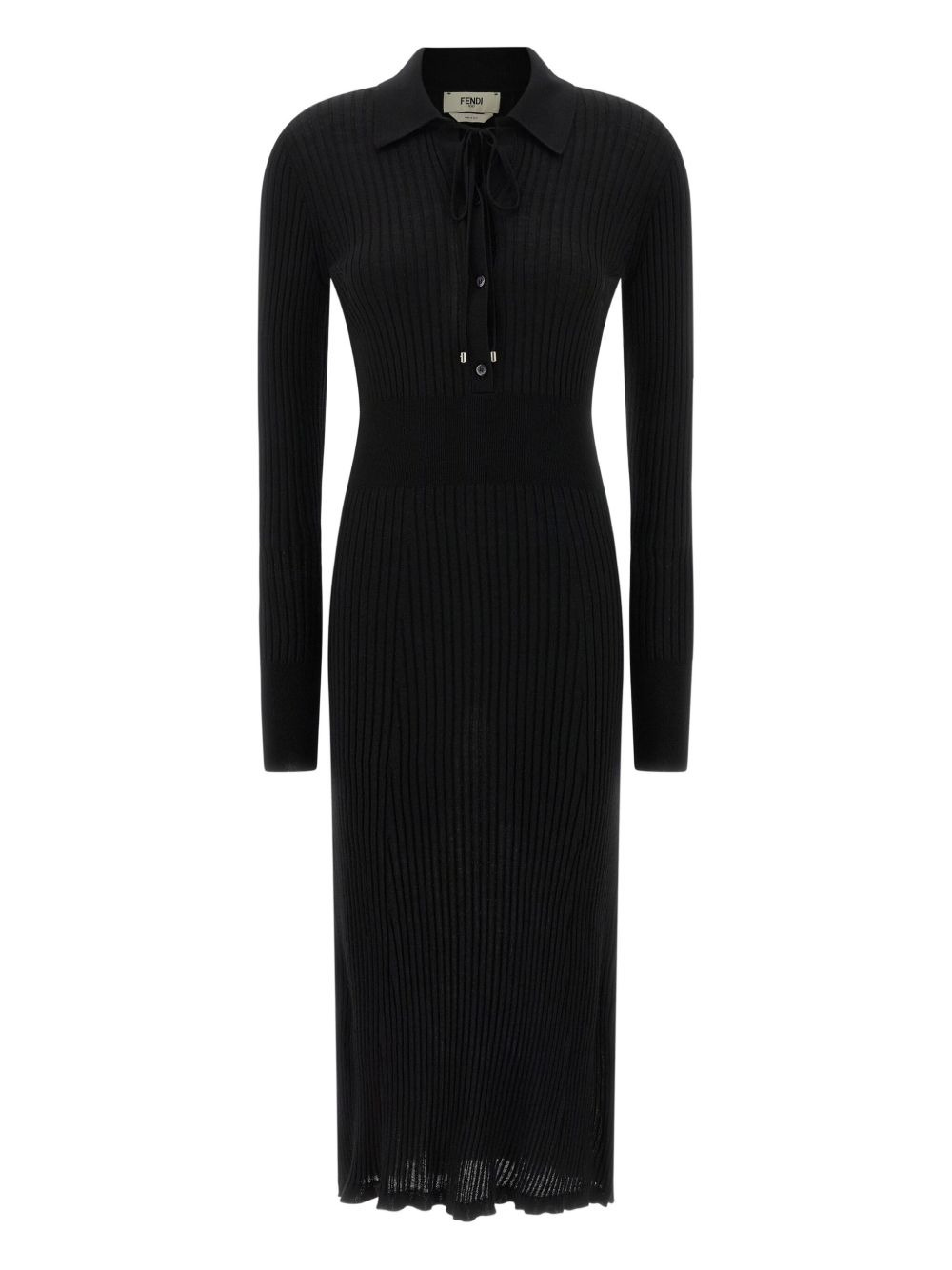Essential ribbed-knit dress Highlights - Black - Ribbed knit - Polo collar - Front button opening - Long sleeves - Side logo embroidery Made in Italy Composition Wool 100% Washing instructions Read Manufacturer Guidelines