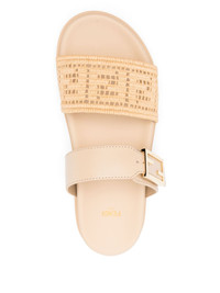 Feel sandals Highlights - Sand beige - Woven raffia design - Round open toe - Ff-logo embroidery - Decorative buckle detail Made in Italy Composition Outer: Calf Leather 100%, Raffia 100%, Fabric 100% Sole: Rubber 100% Lining: Calf Leather 100%, Fabric 100%