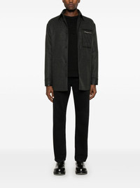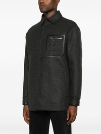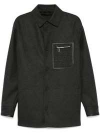 felted shirt jacket Highlights - Charcoal grey - Cashmere blend - Felted - Melange effect - Front button placket - Classic collar - Long sleeves - Buttoned cuffs - Ff-motif panel - Zip-fastening chest pocket - Two front welt pockets - Unlined - Straight hem Made in Italy Composition Outer: Calf Leather 100%, Cashmere 98%, Elastane 2% Lining: Viscose 100% SIZE & FIT Model measurements Height 6 ft 2 in(1.88 m) Bust/Chest 36.61 in(93 cm) Hips 35.82 in(91 cm) Waist 27.95 in(71 cm) FittingInformation Designed for a regular fit, allowing for a comfortably loose fit throughout the body Made from a midweight fabric