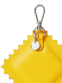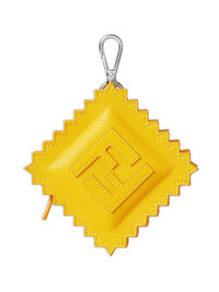 Fendi-logo leather keyring Highlights - Yellow - Leather construction - Ff logo - Ravioli shape - Zig-zag edge - Carabiner fastening Made in Italy Composition Lining: Polyester 65%, Cotton 35% Outer: Metal 100%, Calf Leather 100%