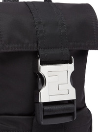 Fendiness mini backpack A hybrid style, the Fendiness bag is a new addition to Fendi's bag edit. Here presented in a black colourway, this small accessory boasts a single shoulder strap that allows multiple carrying ways. True to the Italian label's fondness for branded details, it is finished with the iconic FF motif to the rear. Highlights - Black - Ff motif - Buckle fastening - Front zip-fastening pocket - Drawstring fastening - Adjustable detachable shoulder strap - Silver-tone hardware Made in Italy Composition Nylon 100% SIZE & FIT Measurement DEPTH 1.18 in(3 cm) HANDLE 1.96 in(5 cm) HEIGHT 7.87 in(20 cm) STRAP 19.68 in(50 cm) WIDTH 5.9 in(15 cm)