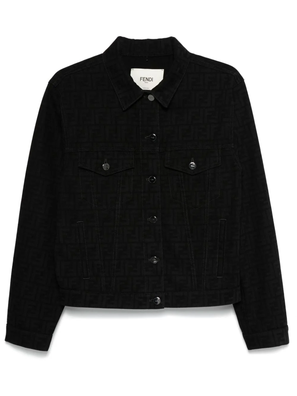 FF denim jacket Highlights - Black - Cotton - Denim - All-over ff motif print - Front button fastening - Classic collar - Long sleeves - Buttoned cuffs - Two chest button-fastening flap pockets - Two side welt pockets - Waist tabs - Straight hem Made in Italy Composition Cotton 100% SIZE & FIT Model measurements Height 5 ft 10 in(1.77 m) Bust/Chest 33.07 in(84 cm) Hips 37 in(94 cm) Waist 24.8 in(63 cm) FittingInformation Designed for a relaxed fit, this piece allows for comfort and movement when worn The adjustable tabs allow for fitted preferences Sturdy and hard-wearing, this denim piece offers no stretch Washing instructions Dry Clean Only