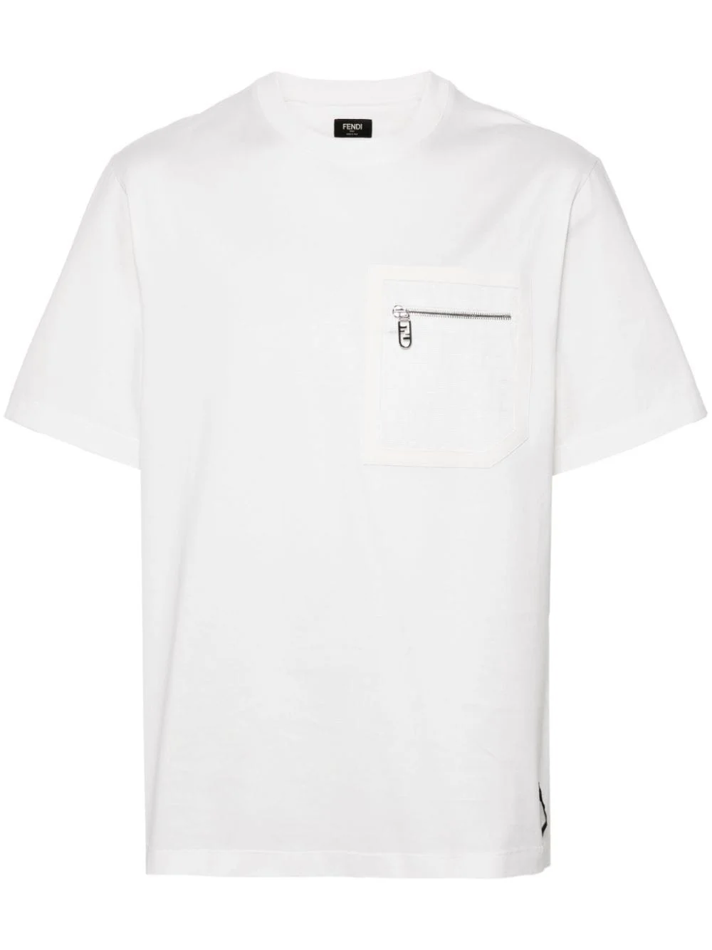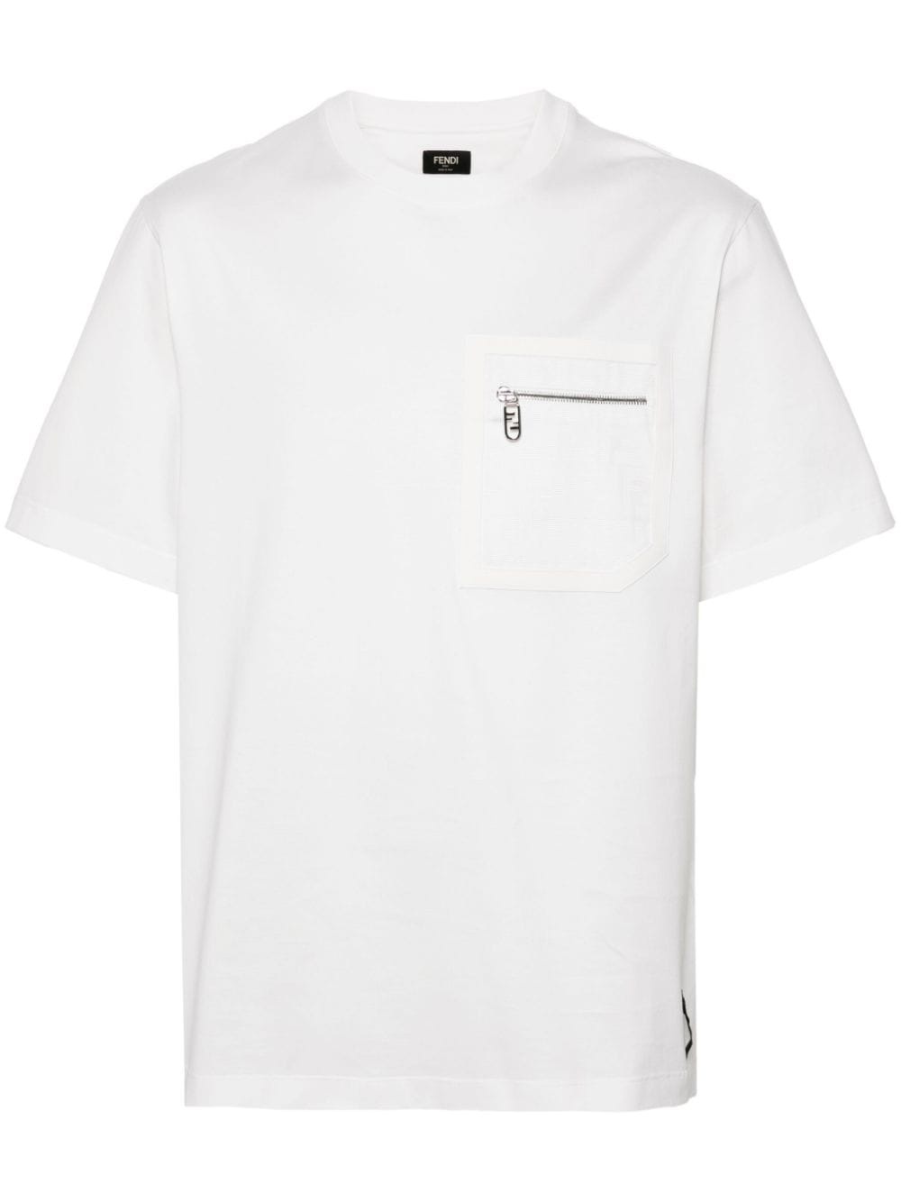 FF-detailed T-shirt Highlights - White - Cotton - Lightweight jersey - Crew neck - Short sleeves - Ff motif - Zip-fastening chest pocket - Mini logo tag - Straight hem Made in Italy Composition Cotton 100% SIZE & FIT Model measurements Height 6 ft 2 in(1.87 m) Bust/Chest 37.79 in(96 cm) Hips 37.79 in(96 cm) Waist 30.31 in(77 cm) FittingInformation Designed for a regular fit allowing for a comfortably loose fit throughout the body Made from a midweight non-stretch fabric, this piece offers minimal elasticity when worn