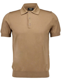 FF-embossed polo shirt Highlights - Almond beige - Wool - Front button placket - Polo collar - Short sleeves - Ff-logo embossed - Ribbed cuffs and hem Made in Italy Composition Wool 98%, Spandex/Elastane 2%