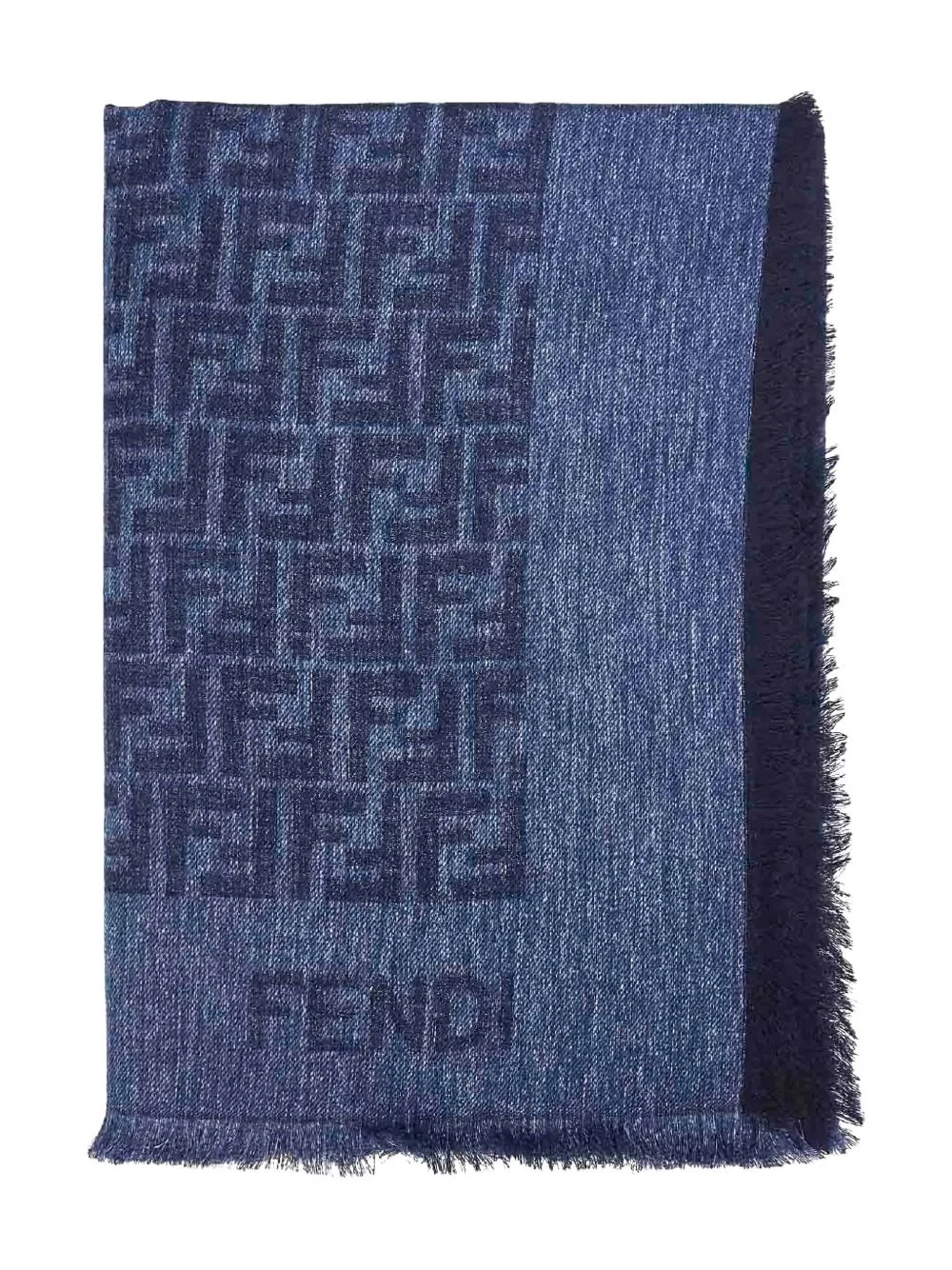 FF fringed scarf Highlights - Blue - Logo lettering - Fringed edges Made in Italy Composition Cotton 64%, Wool 36% SIZE & FIT Measurement LENGTH 55.11 in(140 cm) WIDTH 55.11 in(140 cm) Washing instructions Read Manufacturer Guidelines