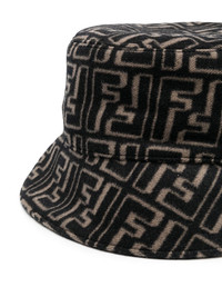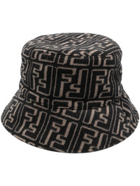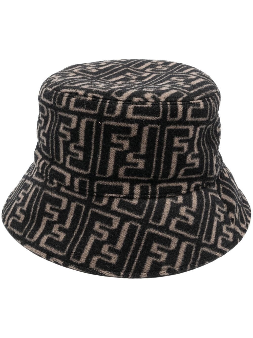 FF-jacquard bucket hat beige/black virgin wool-silk blend cotton FF-logo print monogram jacquard dropped narrow brim Made in Italy Composition Outer: Virgin Wool 99%, Silk 1% Lining: Cotton 100% SIZE & FIT Measurement BRIM 2.75 in(7 cm) CIRCUMFERENCE 23.62 in(60 cm)