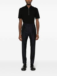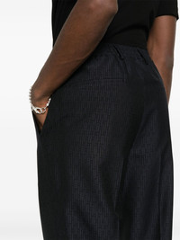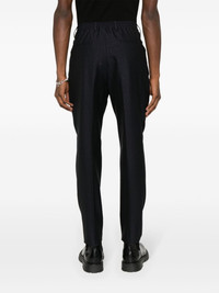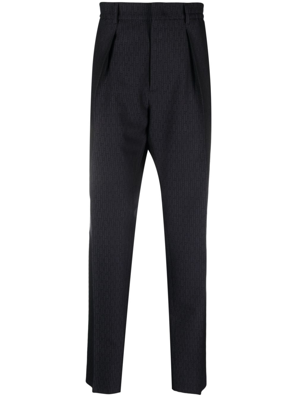 FF-jacquard tapered wool trousers Highlights - Midnight blue - Wool - Full jacquard - Signature micro ff-stripes motif - Pleat detailing - Belt loops - Rear elasticated waistband - Mid-rise - Tapered leg - Slim cut - Concealed front fastening - Two side inset pockets - Two rear welt pockets Made in Italy Composition Lining: Cotton 100% Outer: Wool 100% SIZE & FIT Model measurements Height 6 ft 2 in(1.88 m) Bust/Chest 36.61 in(93 cm) Hips 35.82 in(91 cm) Waist 27.95 in(71 cm) FittingInformation Designed for a slim tapered leg, offering a close fit that sits just away from the leg with a closer fit towards the ankle The partially elasticated waistband offers increased movement and comfort at the waist Made from a midweight non-stretch fabric This piece fits true to size – take your usual size