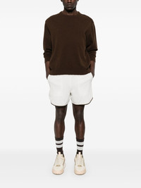 FF-jacquard track shorts Highlights - White - Elasticated waistband - Two side inset pockets - Contrasting trim Made in Italy Composition Polyester 100% SIZE & FIT Model measurements Height 6 ft 0 in(1.84 m) Bust/Chest 37.79 in(96 cm) Hips 37 in(94 cm) Waist 31.49 in(80 cm) FittingInformation Designed for relaxed fit, offering a comfortable loose fit over the leg The elasticated waist allows for a comfortable fit Made from a midweight non-stretch fabric, this piece offers minimal elasticity when worn